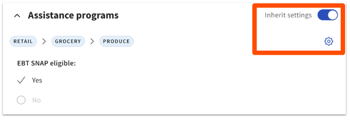 You can also set EBT-eligibility at the menu group level by following the same steps above to access the menu groups detail page. You can either inherit the Payment Assistance Program settings from the parent level, or specify a different setting.