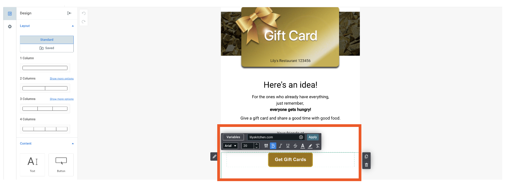 Exclusive email promotions can be a great way to spice up communications with your guests and give them another reason to return to the restaurant (and soon!). To add a promotion to your email template, you must create a discount with a promo code. Learn how to create a promo code: Get Started With Discounts.