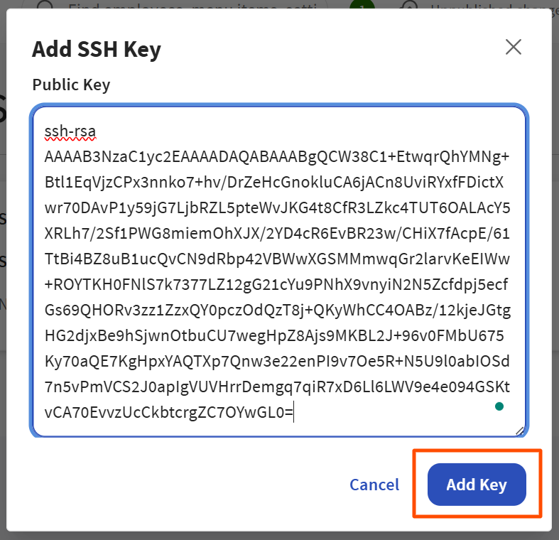 The steps to create a public SSH (Secure Shell) key and add the key in Toast Web are described in our .