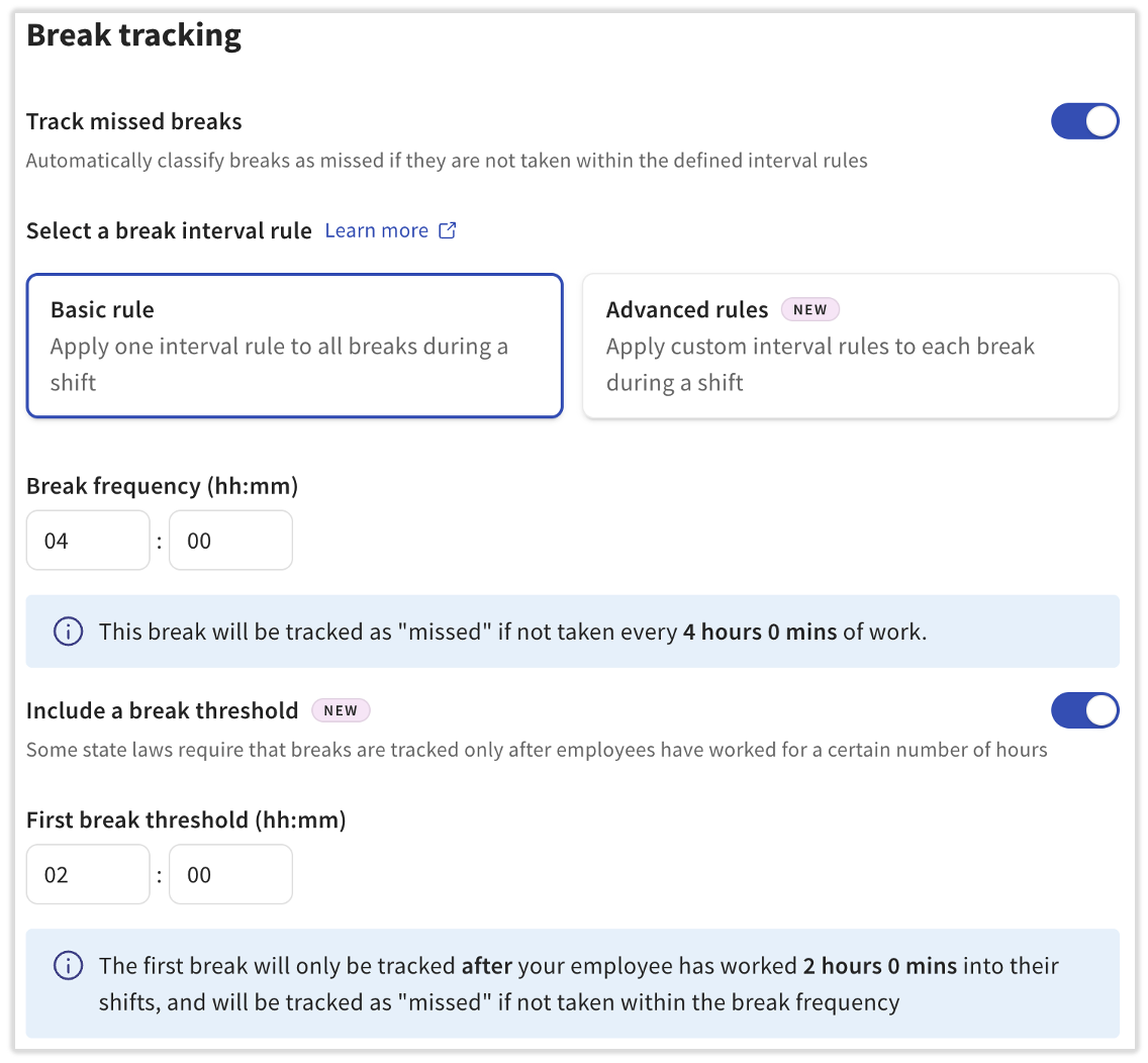 Use advanced rules to apply custom interval rules to each eligible break during a shift.