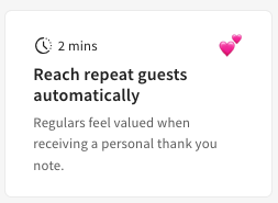 | Repeat Guest | Targets "regulars" of your restaurant to share a thank you message or special offer after every 5th visit. |