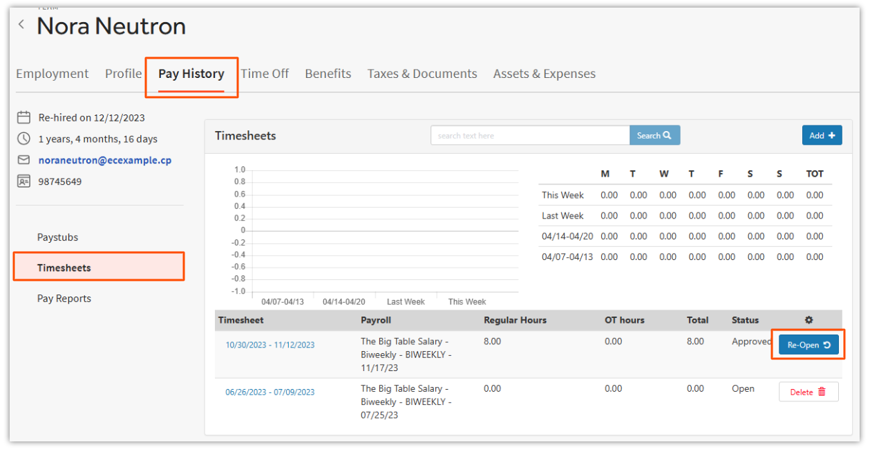 If the timesheet has been approved already, it will first need to be reopened.