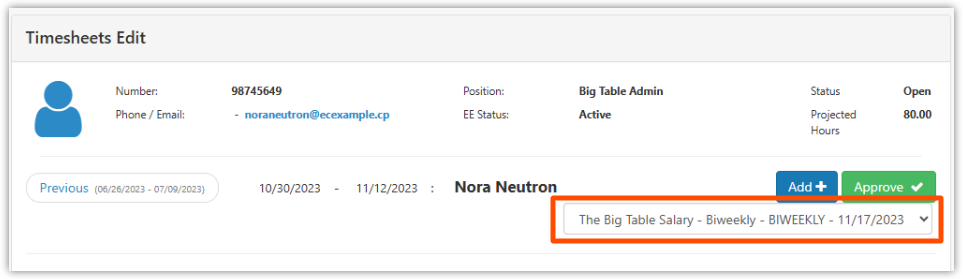 Can I change which payroll an employee timesheet is tied to?