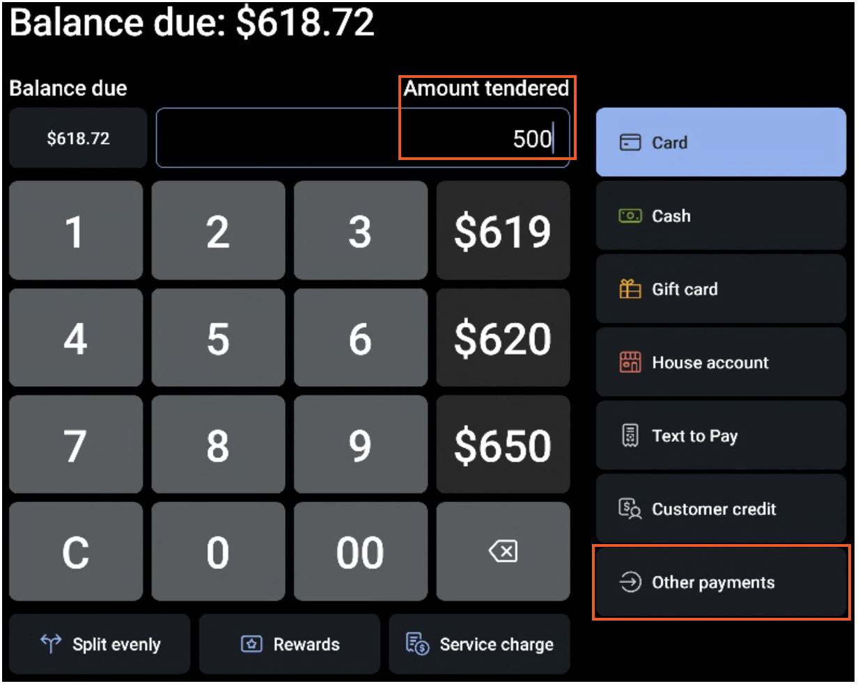 After your guest has completed their event or is paying for their check, use the other payment option you just created to subtract the deposit value from the check total.