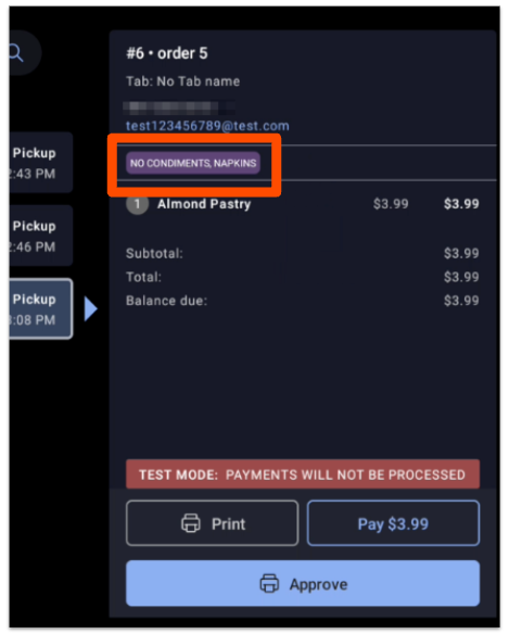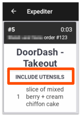 | Packaging Preferences will only show on the Expediter Kitchen Display Screen or tickets printed from the Expediter printer. They will not show on Prep Station Display Screens or print on tickets from a Prep Station printer. |