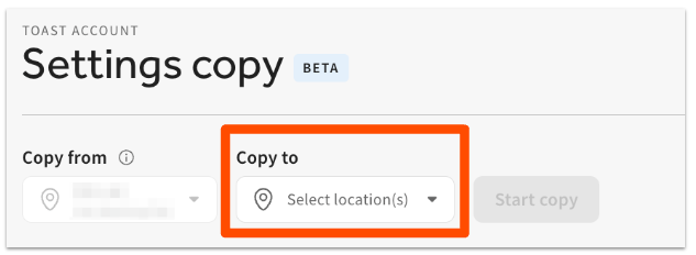 This feature is only available for customers using the Restaurant Management Pro suite, Restaurant Management Enterprise suite (learn more: Toast Suites Overview), or Toast Multilocation Management (MLM). If your restaurant uses Restaurant Management Pro, we recommend managing front of house settings for multiple locations using the updated UI options page instead of the Settings copy tool. Learn more about managing settings for multiple locations with the Restaurant Management Pro suite in this Support Center article: Manage UI Options for Multiple Locations.