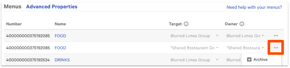 There are a few different places in Toast we can go to remove a version of a menu element: