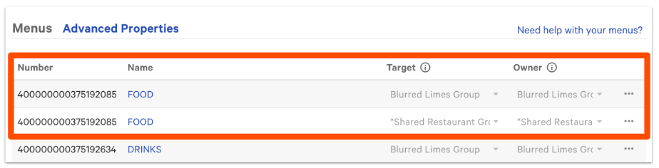 You can view all versioned menu entities in an expandable view on the Advanced properties page (Menus > Bulk management > Advanced properties).