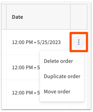 Yes! From the orders page, select the 3 dots at the right-hand side of the order row you’re trying to duplicate. This will create a new and identical order. You can then edit any portion of the new order as you see fit.