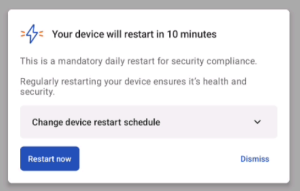 To maintain security compliance and device health, the Toast Go® 3 automatically performs a daily reboot approximately 24 hours after powering the device.