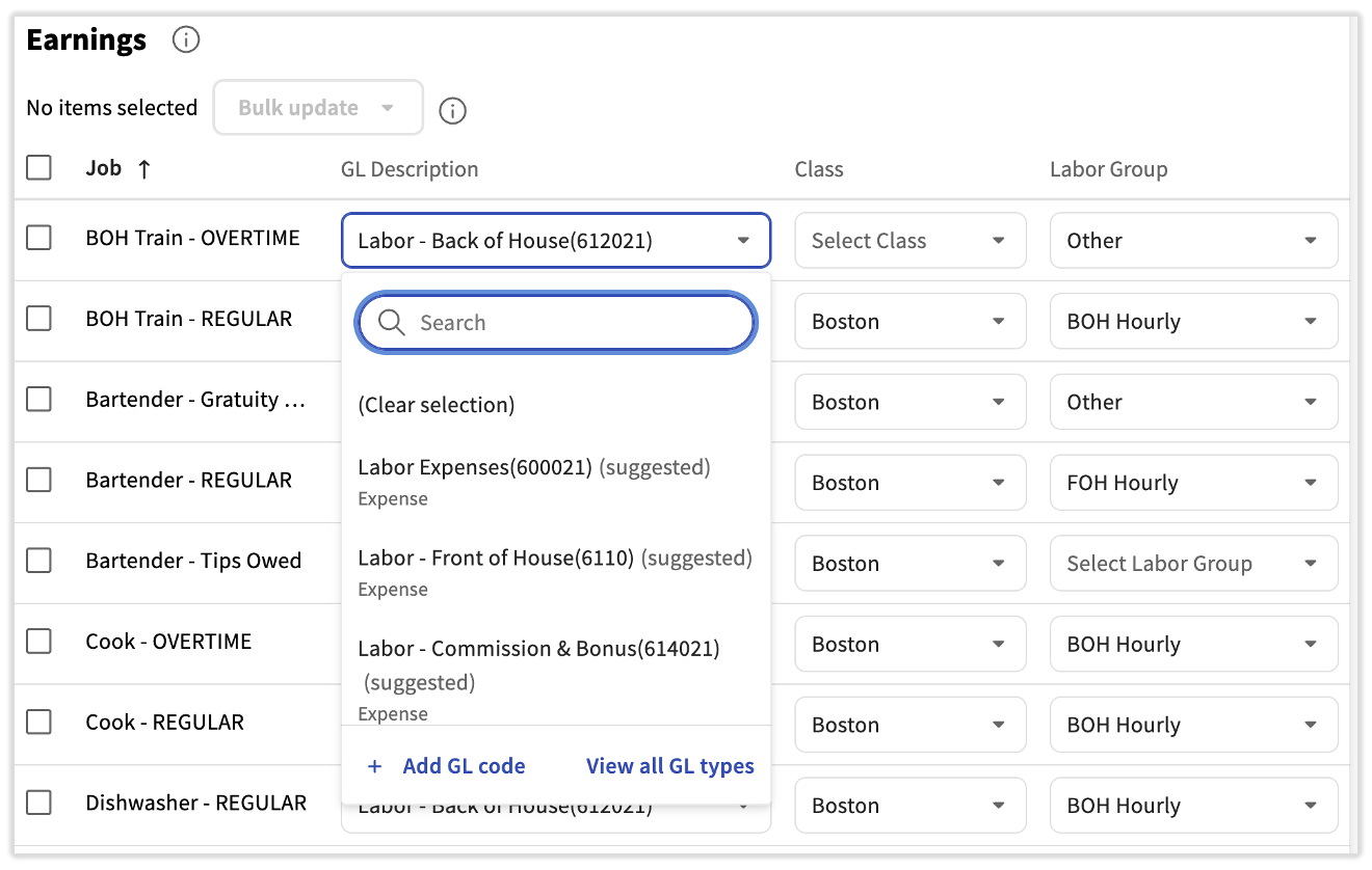 This video helps customers map GL codes from QuickBooks Online to the payroll expenses and liabilities in Toast Payroll. See step 9 below.