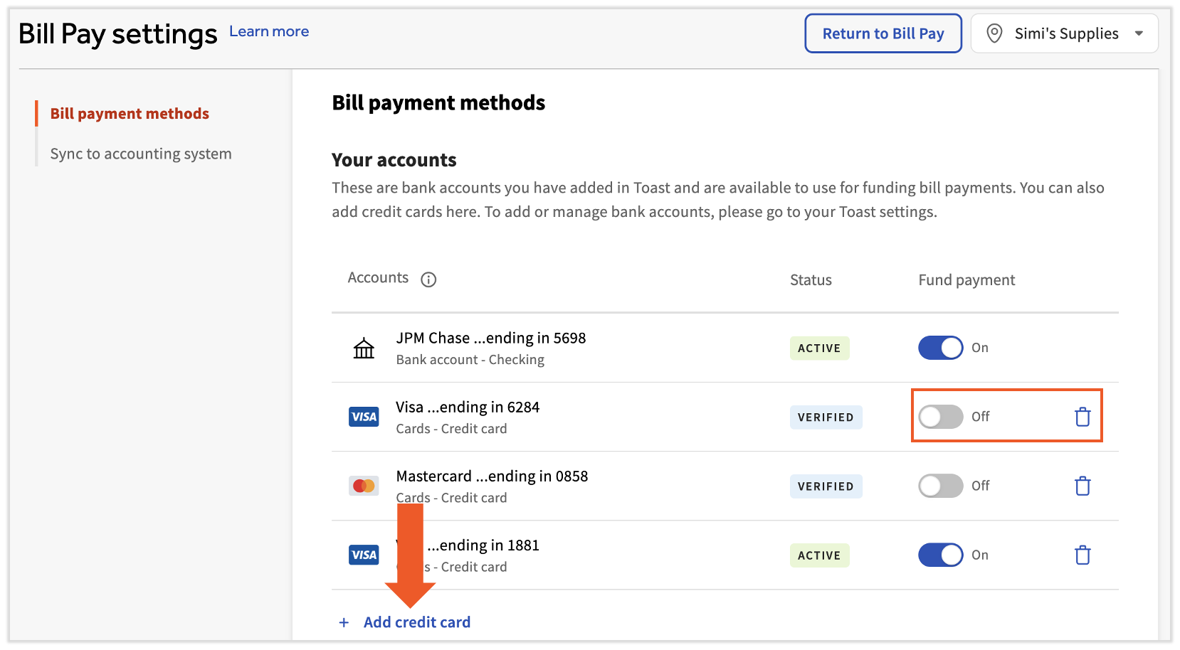 Toast Bill Pay is our new, intuitive restaurant invoice payment solution, powered by xtraCHEF, that combines cash flow visibility with the flexibility of how and when customers wish to pay their suppliers. Only the Tenant Administrator user role has access to this feature.