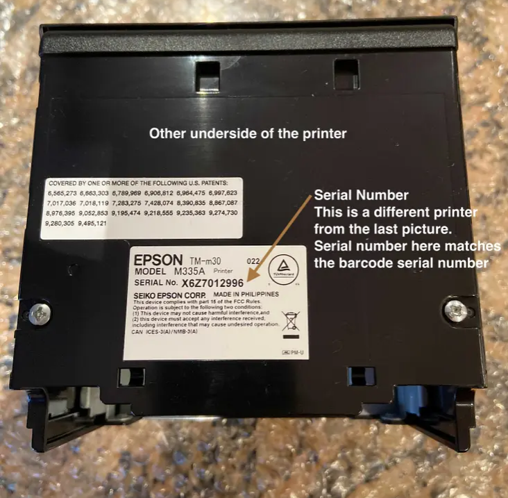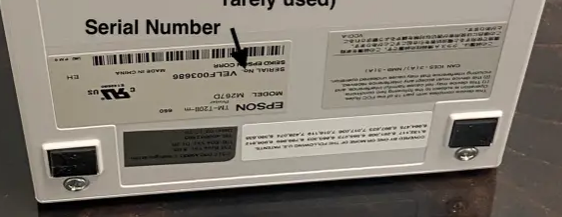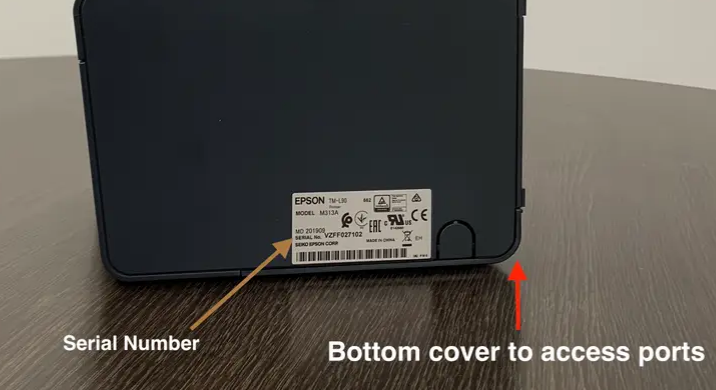 The serial number is printed on the bottom of the printer. You’ll need to remove the bottom plate to see it.