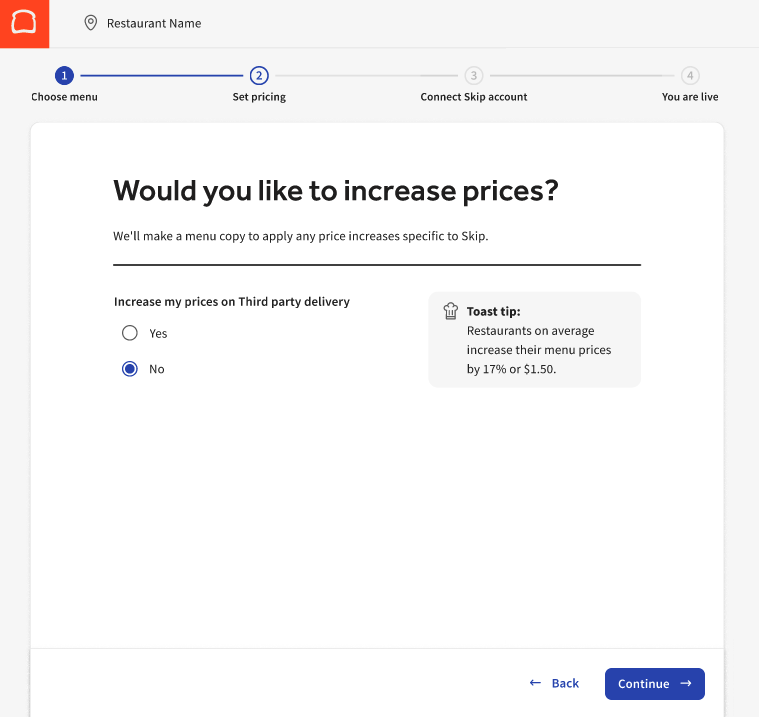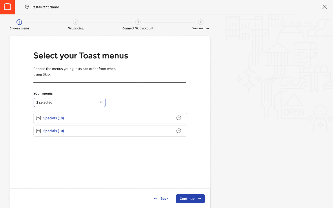 You can connect your Toast POS with Skip's marketplace in a few easy steps