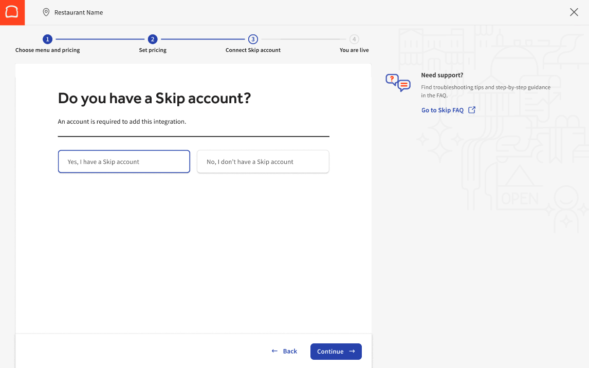 Note: Before you begin, we recommend setting up a Skip account in advance. You can sign up (external link) if you do not have an account.