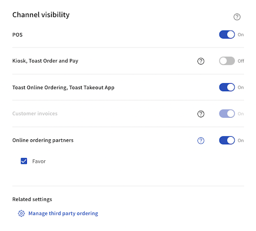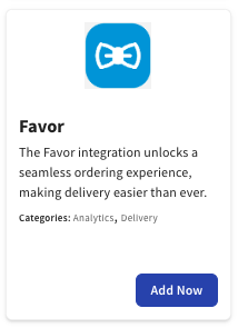 The Favor integration requires access to Toast Partner Integrations. See Set Up Toast Partner Integrations to learn more.