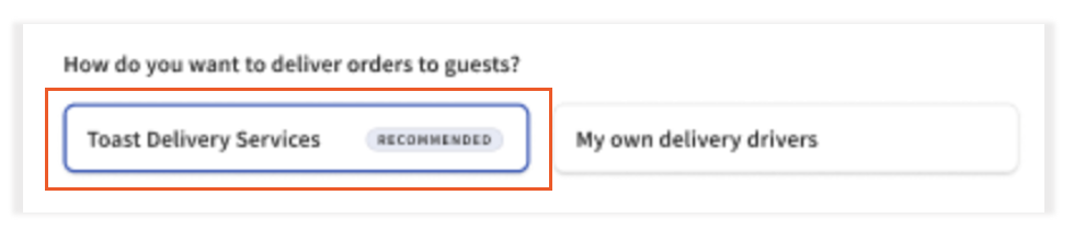 | Toast Delivery Services® can be powered by either Uber Direct or DoorDash Drive. Uber Direct and DoorDash Drive are white-label delivery services, meaning drivers deliver Toast Delivery Services® orders from Toast Online Ordering. For more billing information, see Toast Delivery Services® Automated Billing Overview. |