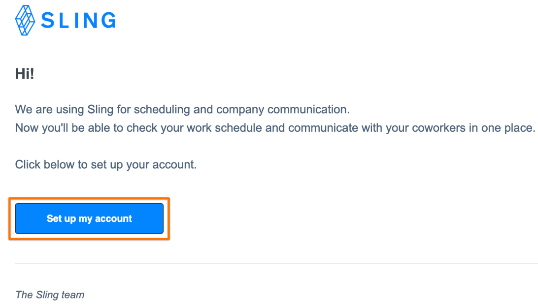 If your company uses Sling, a manager or admin must send you an invitation to join their account. This invitation link is required to access your schedule and use Sling.