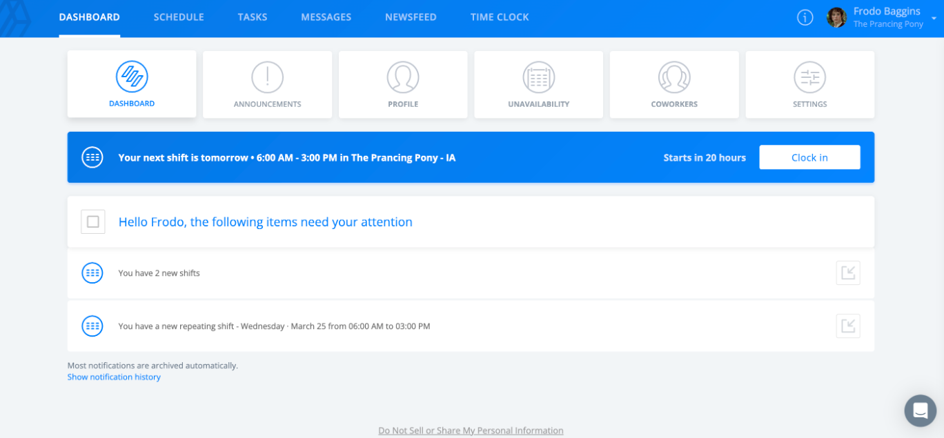 After completing the setup, you will be logged into Sling to view your schedule and access the features your company has enabled.