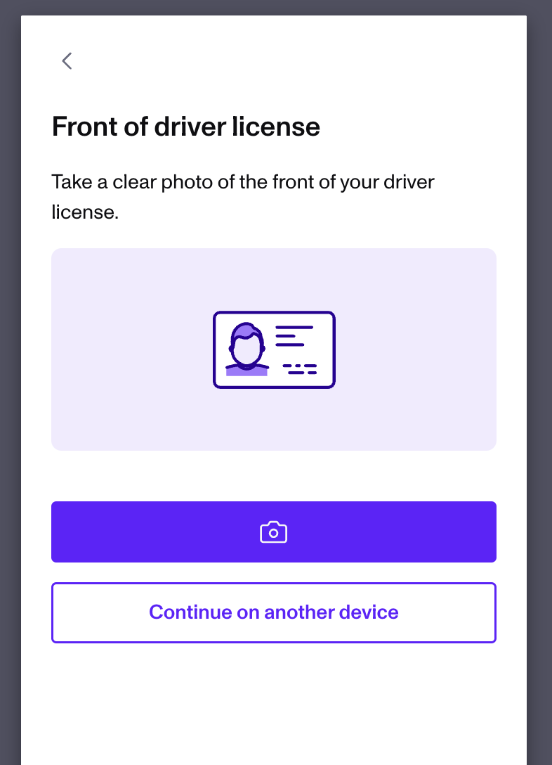 In certain circumstances, Toast requires customers to verify their identity using an ID verification process. This flow will ask you to take a photo of yourself (a live selfie) and your government ID. This process ensures an additional level of security for sensitive information.