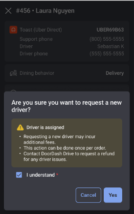 You can request a new driver on an order on the POS via All Checks.