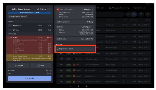 How can I request a new driver for a Toast Delivery Services® order?