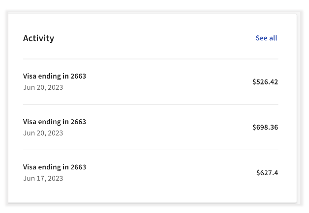 Once you complete an instant deposit transaction, the transaction shows on the instant deposit homepage under the Activity section. This is the best place to check the status of your instant deposit transactions quickly.