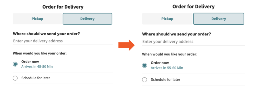 If you manage deliveries with your own drivers, you will be able to add a delay specifically to the quoted time for guests.