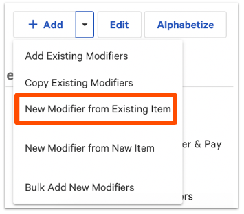 When creating a new modifier, select New Modifier from Existing Item.