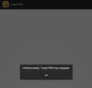 If the tablet appears to be frozen or the Toast POS stops working, you may receive the following prompt: