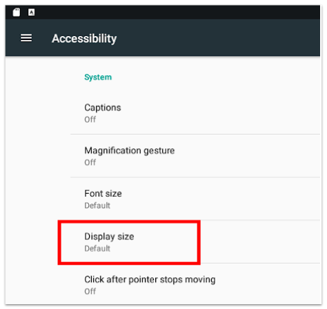 Within your Android device settings, navigate to Device Settings > Accessibility > Display size and check that the Display and Font sizes are set to Default. When either setting is turned up, the device may think it is a handheld device.