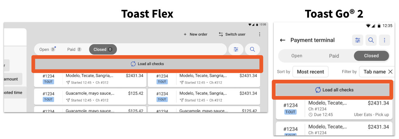 Toast has also added a Load all checks button to fetch older closed checks during a server’s shift. The button will be hidden if the server scrolls to view other checks, but will be visible when the server is at the top of the list of checks.