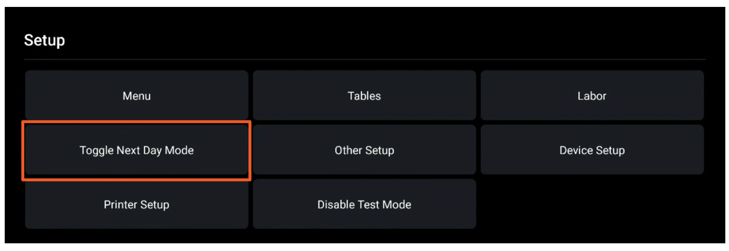Follow these steps to configure next day mode in Toast Web: