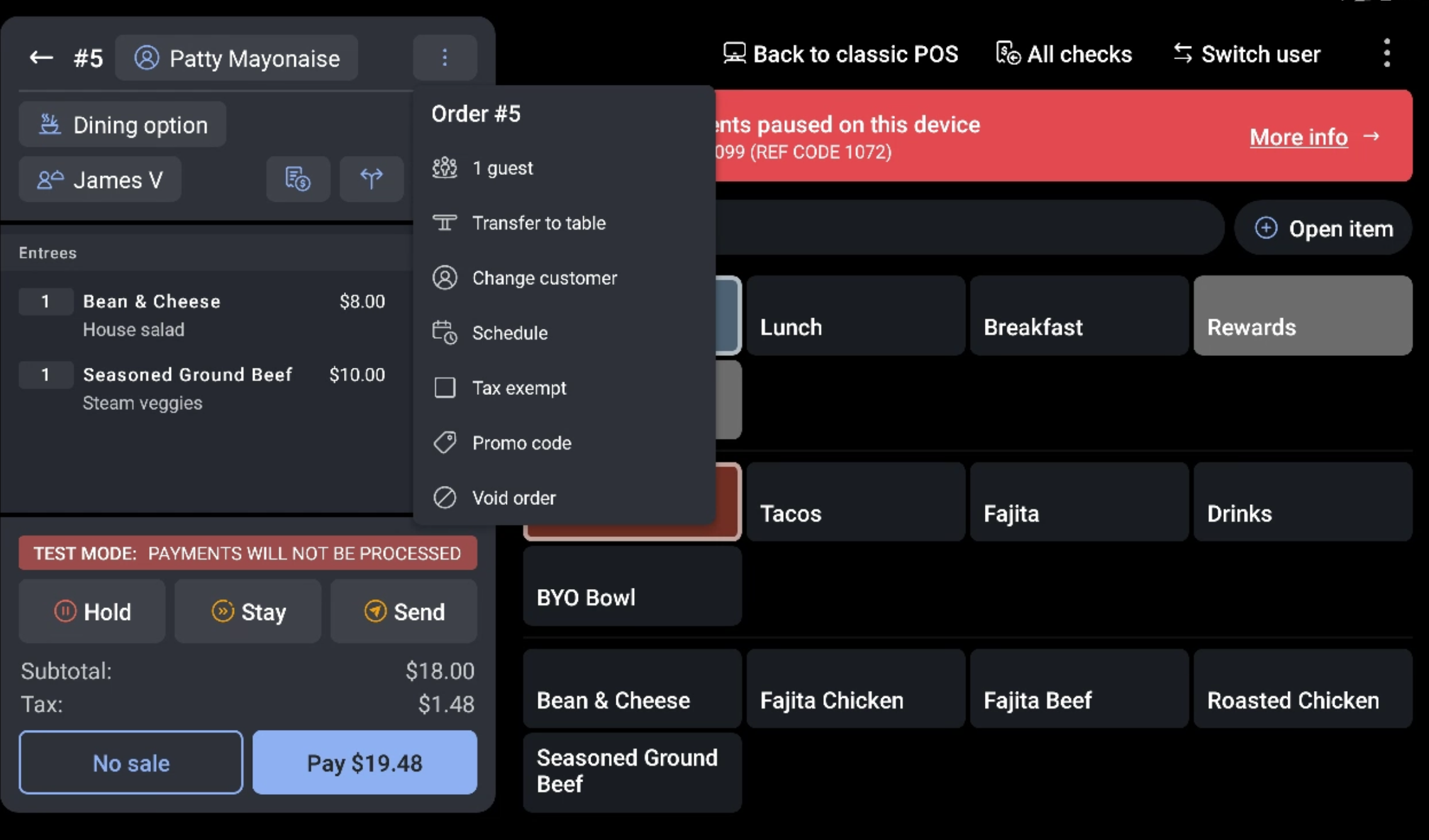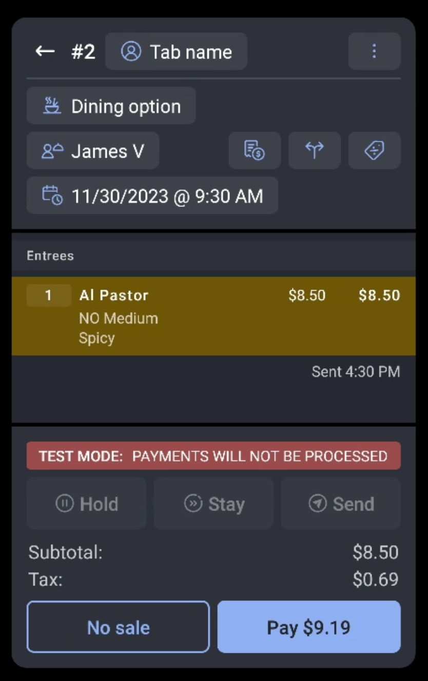 Orders that have not been paid for in advance will remain in the Open Checks tab of the payment terminal until the following day--when they will then need to be paid for and closed. Credit card payments for orders placed in Next Day Mode will be processed and accounted for in the next day's sales.