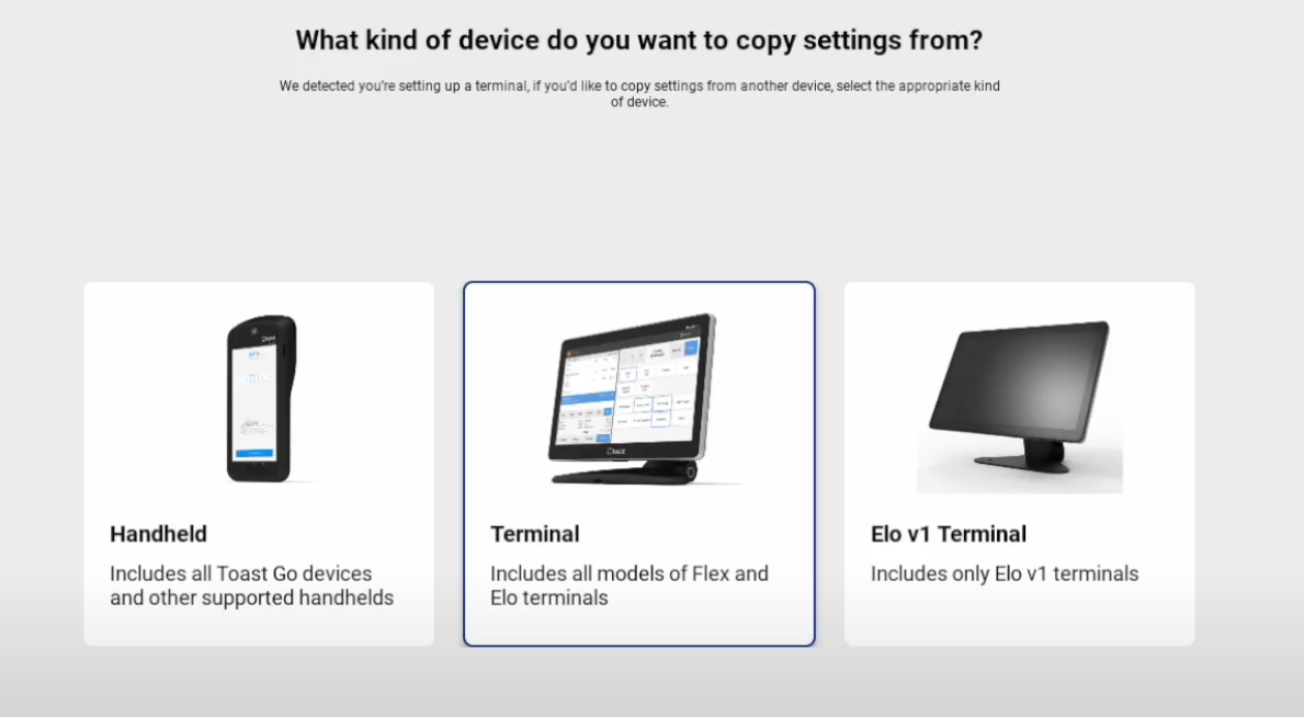 When you receive a new Toast device, you have the option to set it up manually from scratch or use the same exact settings from one of your existing devices. The device replacement workflow described here will help you replace or update a Toast device quickly and easily by copying an identical device configuration.