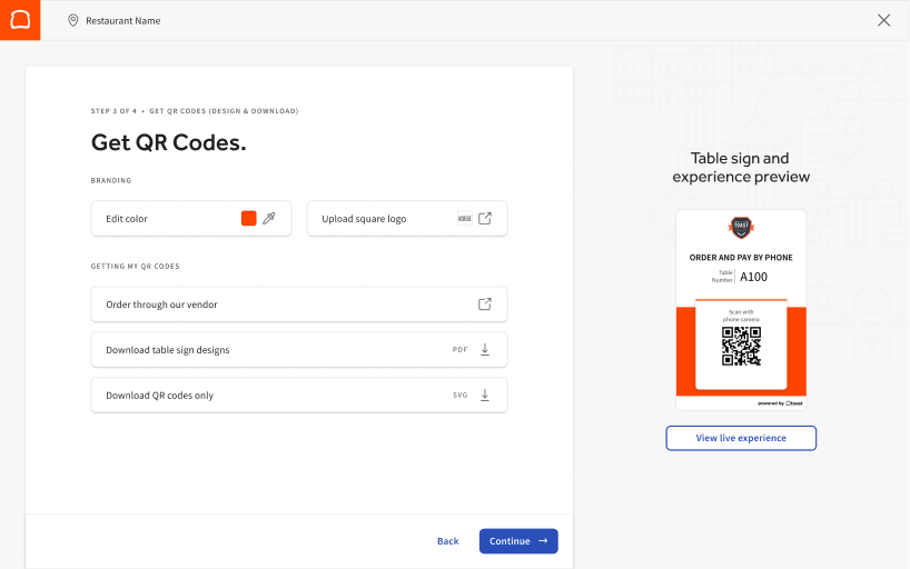Nice work! By taking the steps listed above, you are ready to start using Toast Mobile Order & Pay® in your restaurant. Before you show off your signs to the guests, check out our to learn how to serve alcohol through Toast Mobile Order & Pay®, how guests can split a check, and more.