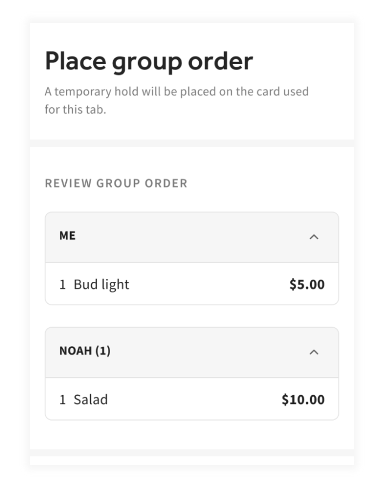Group Ordering allows multiple guests to join a single tab from their device and then simultaneously submit orders to the kitchen on the same ticket.