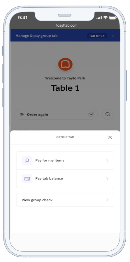Restaurants must have both Tabs and Group Ordering for Toast Mobile Order and Pay® enabled in Toast Web in order to enable the split payments feature.