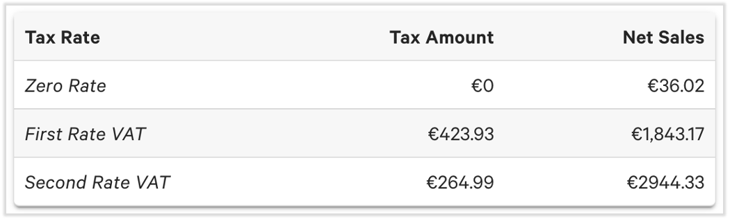 It's recommended that you split up each separate tax rate so it's easy to look at reporting. For example, you might choose to set up two different VAT rates if that's the case in your area.