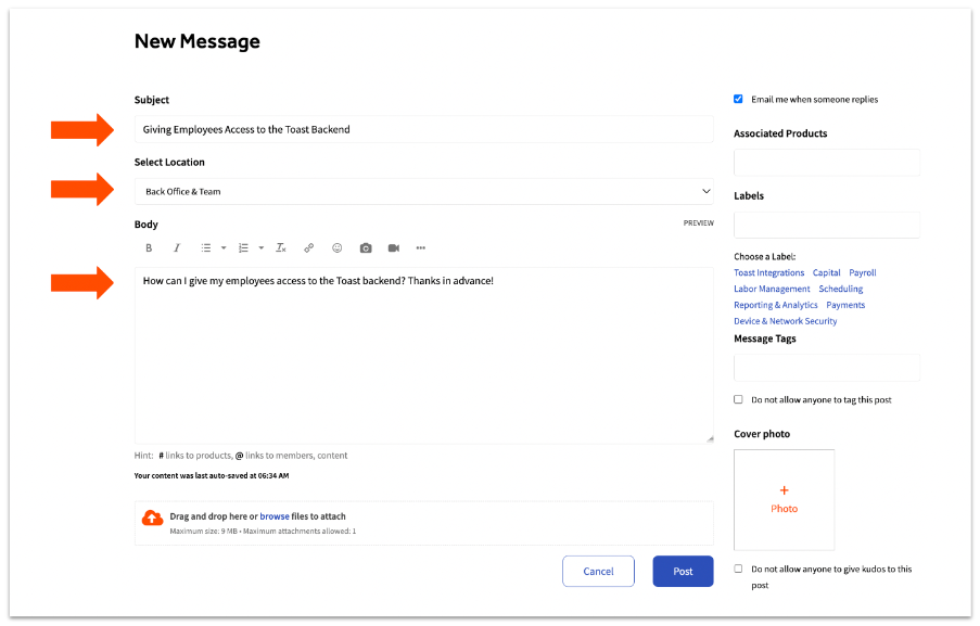 Note: You must log in with your Toast Web login credentials to access the Toast Community.