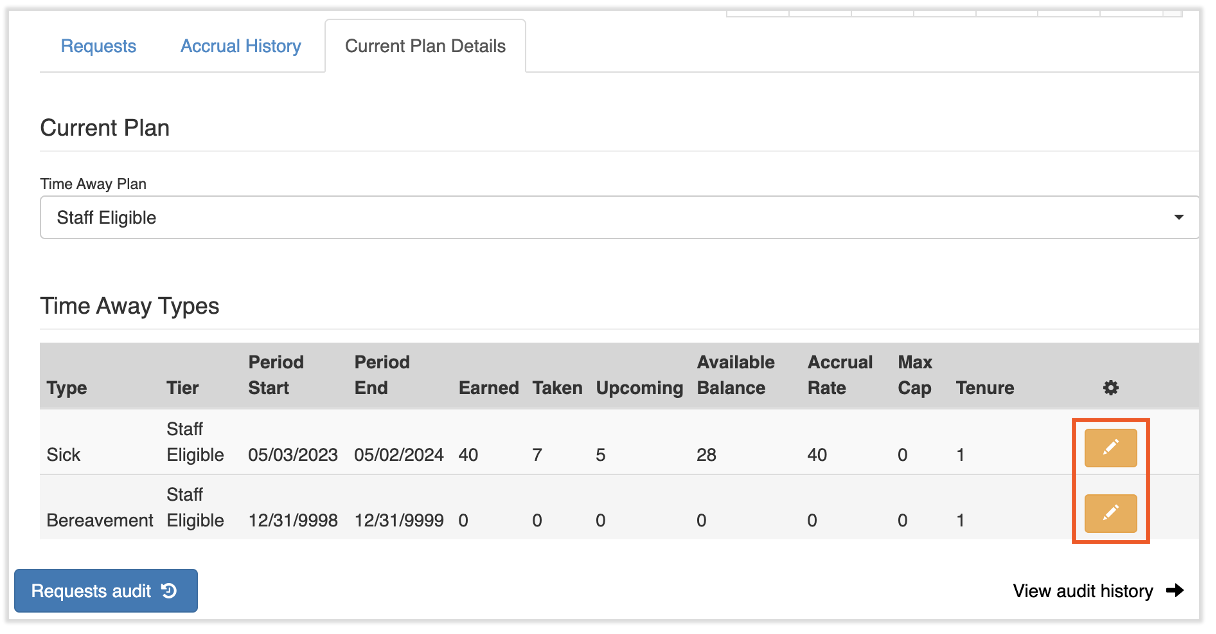 To view an employee's TAFW balance and history, use the Team page or the Search employees bar to locate this employee. From their profile, select the Time Off tab.