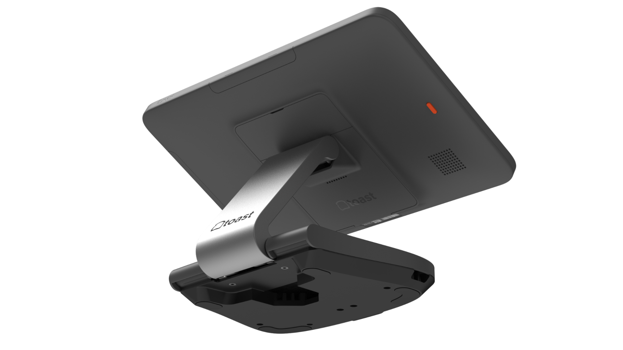 The Toast Flex 3 Terminal consists of a screen attached to a neck with two hinges and a base with built-in cable connections and management (see image below). It is intended for use by customers in front-of-house settings that are visible to guests and where space constraints require adjustability of the terminal viewing angle.