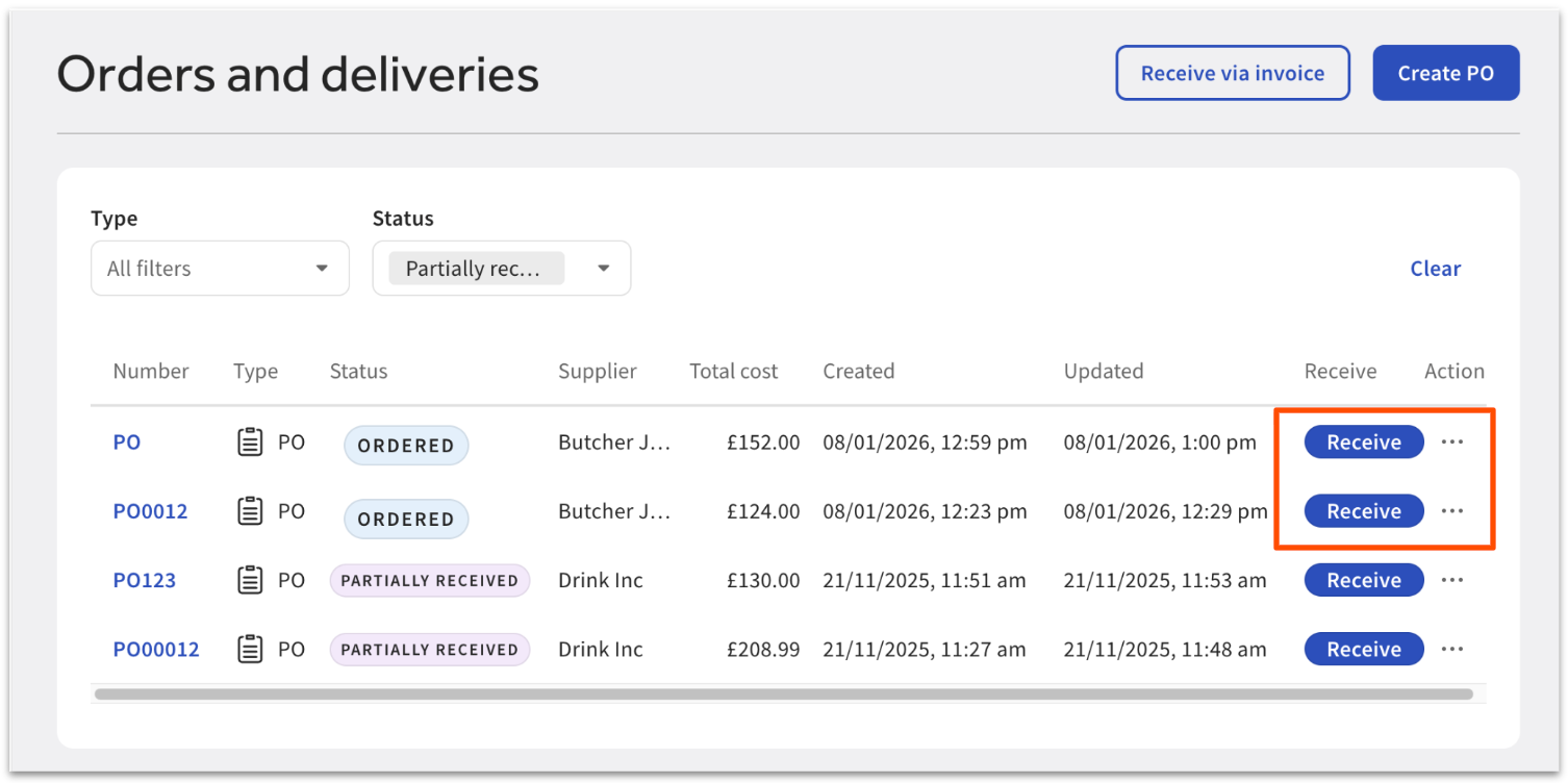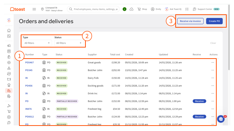 Toast Inventory: Generate Purchase Orders & Receive Inventory (Canada, Ireland and UK)