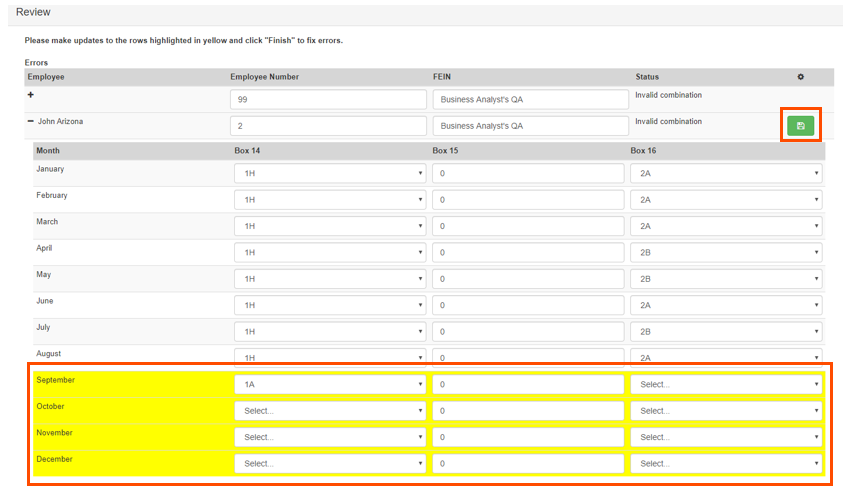 If you have a few edits to make, the simplest way to do this is by manually updating the affected employee's ACA Filing Data in their respective employee profile. To make updates to employee coding: