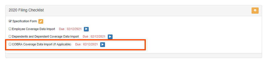 Employers with self-insured medical plans may be required to report COBRA coverage. If one or more of your medical plans are self-insured, COBRA regulations may require additional information. This information can be included by completing the COBRA Coverage Data Import, which can be found on the ACA Filing Checklist.