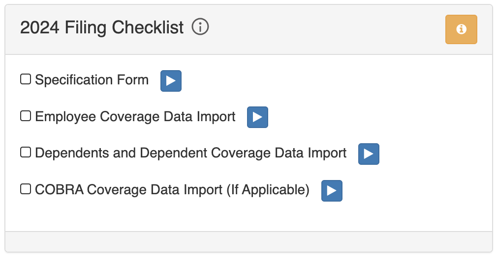 After completing the questionnaire, an updated filing checklist with corresponding dates will be visible on the right panel of the page. Your Filing Checklist items automatically generate based on your responses in the ACA Checklist Questionnaire.