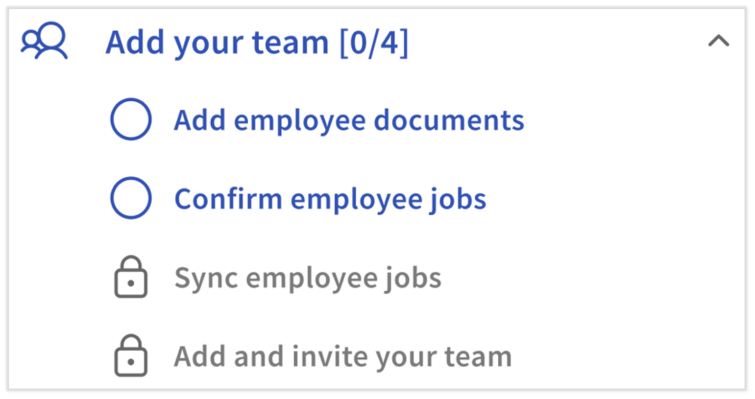Add your team: Now that you've set up taxes and employee pay options, it's time to add your staff to Toast Payroll. The first task asks you to add employee documents you'd like your employees to receive during their own onboarding tasks. Next, add and/or confirm all jobs in your database. Jobs are added to Toast in Toast Web and assigned to employees in Toast Payroll. Once complete, the checklist will be back in the hands of your Onboarding Consultant for the third step. Finally, you can now add and invite staff to Toast Payroll.