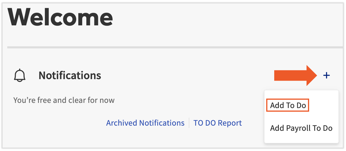 | Employee To Dos are different than Payroll To Dos (these help payroll administrators set reminders for upcoming payrolls). |