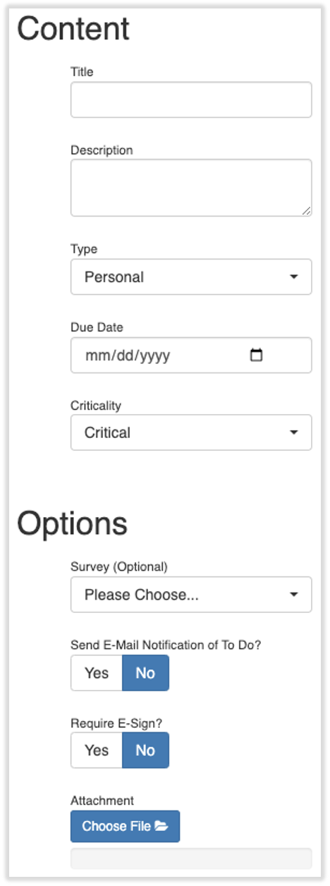 Employee to do's are used to send surveys, messages, and/or documents to an individual employee or group of employees for acknowledgment. To do notifications will appear on the dashboard when an employee first logs into Toast Payroll. Once a to do is sent, it cannot be removed/undone.