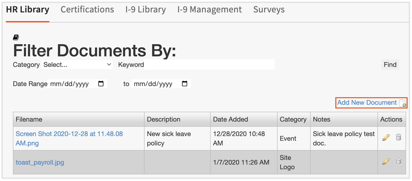 You may require an e-signature on the document, but once the employee reads and signs the to do, only the signature will automatically be uploaded into their Document Library (My Profile > Taxes & Documents). The document itself will not be uploaded to their profile.
